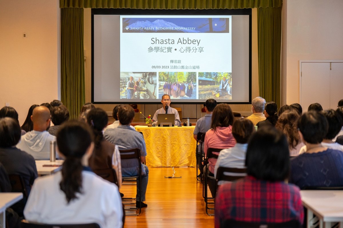 長週末的週日下午,近百人齊聚舊金山道場,參與了一堂別開生面的經驗分享課程。常啟法師曾於舊金山道場講述《證道歌》及《維摩詰經》。法師風趣的談吐、藝術家般精細的觀察與描述、解行並重的獨到心得,吸引了眾多粉絲。這次也不例外——各種各樣陌生或熟悉的面孔,從充滿期待和好奇到笑聲不斷又若有所思,結束時更是全場鼓掌,不捨得離開。