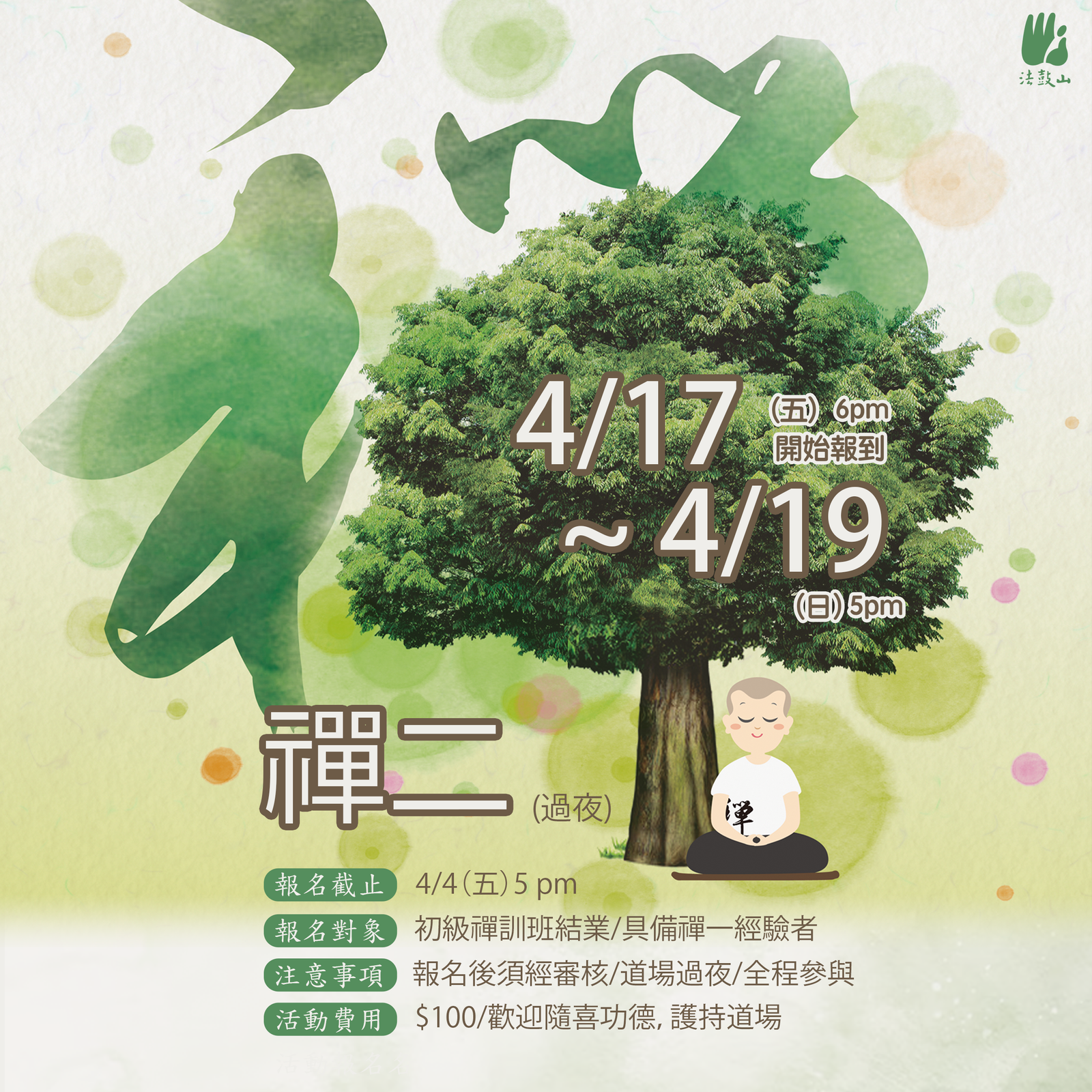 【活動費用】$ 100 請在收到錄取通知後繳交費用,並歡迎隨喜功德,護持道場。